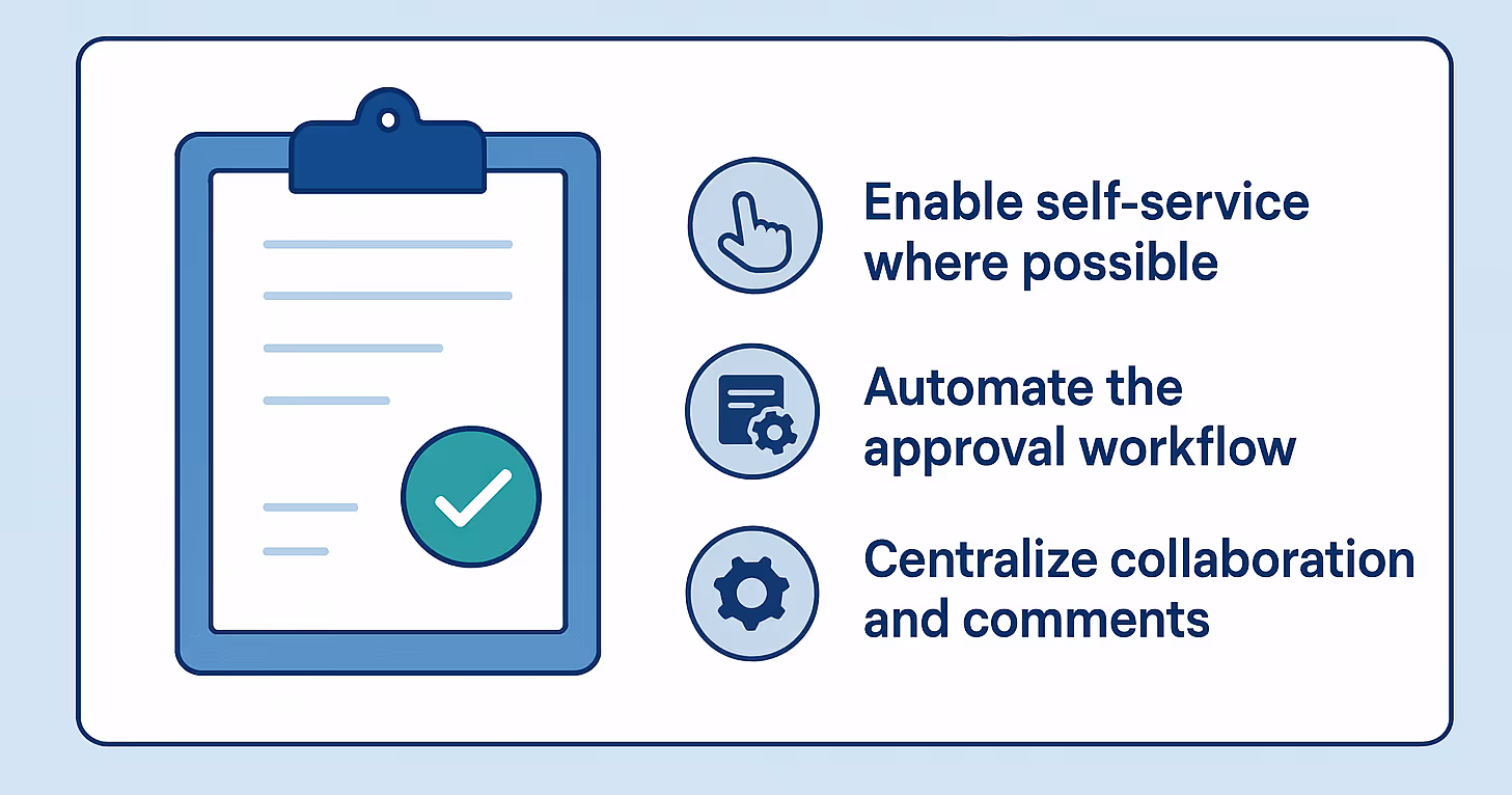 Conversations about contracts often happen across tools. One thread might live in email, another in Slack, and a third in a Google Meet chat. The contract management plan should include a clear policy on where collaboration happens. Ideally, all stakeholders should be able to view the latest version of the contract, add comments, and see approval statuses in one central system. This minimizes confusion and eliminates the need to forward PDFs or screenshots of redlines.