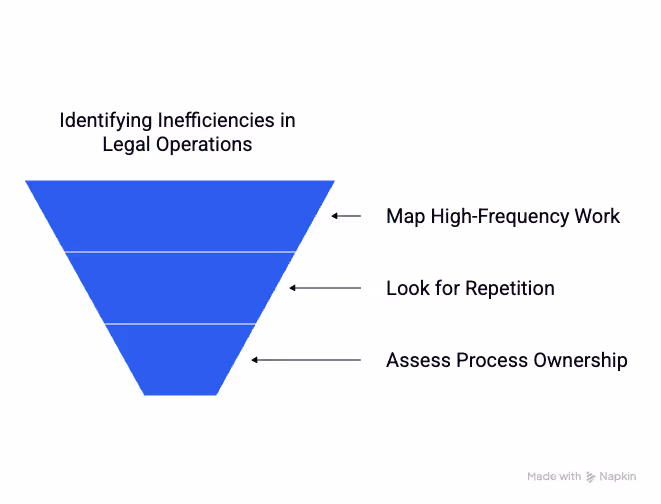 The first step in legal operations optimization is figuring out where your time goes. Tasks like reviewing low-value contracts, responding to recurring internal queries, or handling standard research requests often consume more time than necessary.