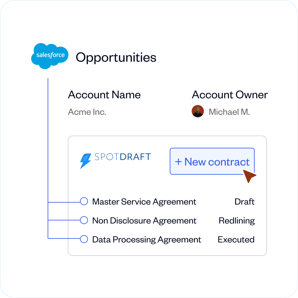 Yes. SpotDraft connects with CRMs like Salesforce and HubSpot, eSignature tools, Microsoft Word, and other business systems to fit seamlessly into your existing workflows.